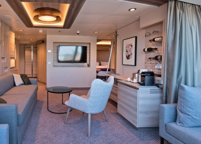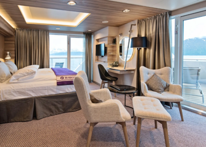 | MD - Expedition Large Suite s balkónom ♿ 35 m². Balkón. TV, minibar, varná kanvica, kávovar. Bezbariérová kajuta♿ 7. paluba vpredu. Max 4 osoby. Výhody Suite. | 35 282 € 17 641 € za osobu | ||