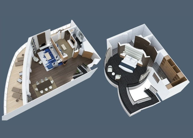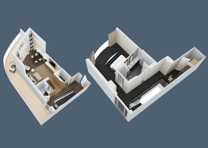 OL - Owner Loft Suite s balkónom 90 m² + balkón 46 m². 2-podlažný apartmán. 8. paluba. Max 4 osoby. Výhody Royal Suite Star Class. 7 672 € 3 836 € za osobu
