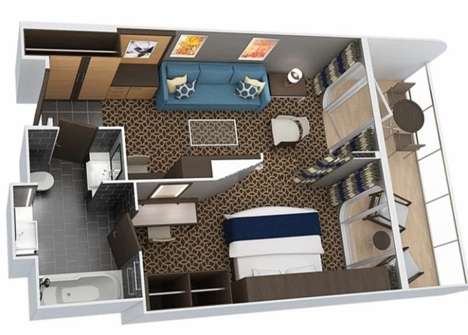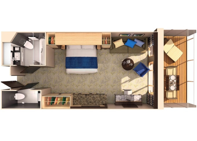 2F - Kajuta s balkónom Super Studio 11 m² + balkón 5 m². 6/7. paluba. Max 1 osoba. 1 347 € 1 347 € za osobu
