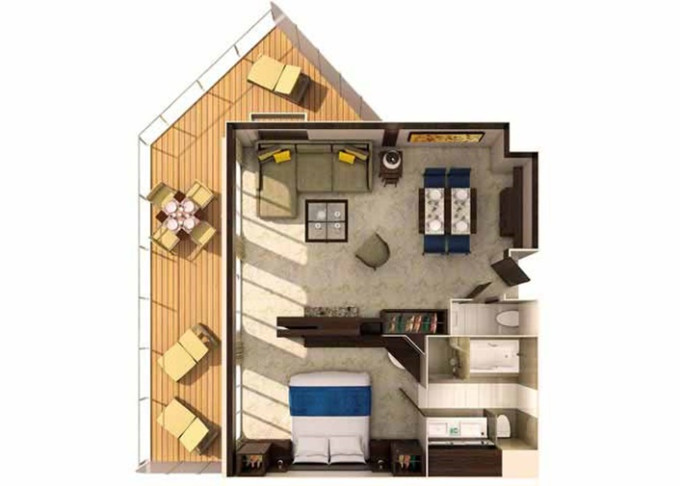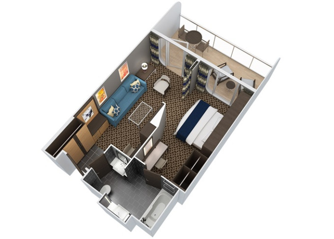 J1 - Junior Suite s veľkým balkónom 25,5 m² + balkón 15 m². Max 2-4 osoby. Výhody Royal Suite Sea Class. 3 069 € 1 023 € za osobu