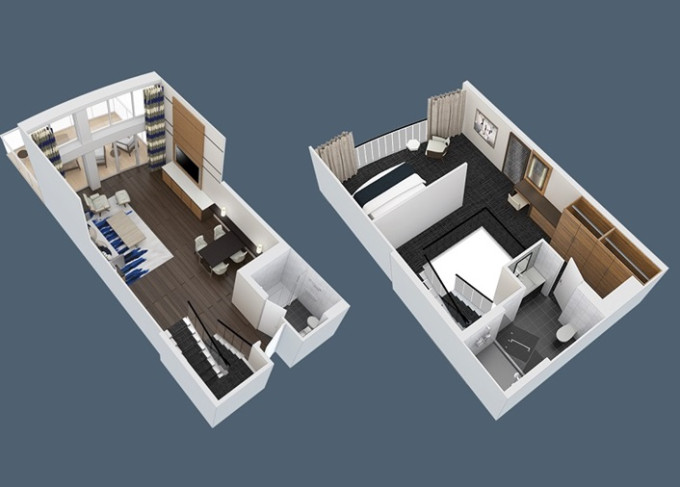 GL - Grand Loft Suite s balkónom 65 m² + balkón 33 m². 2-podlažný apartmán. 8,10. paluba. Max 4 osoby. Výhody Royal Suite Star Class. 7 022 € 7 022 € za osobu