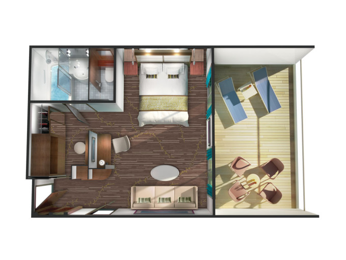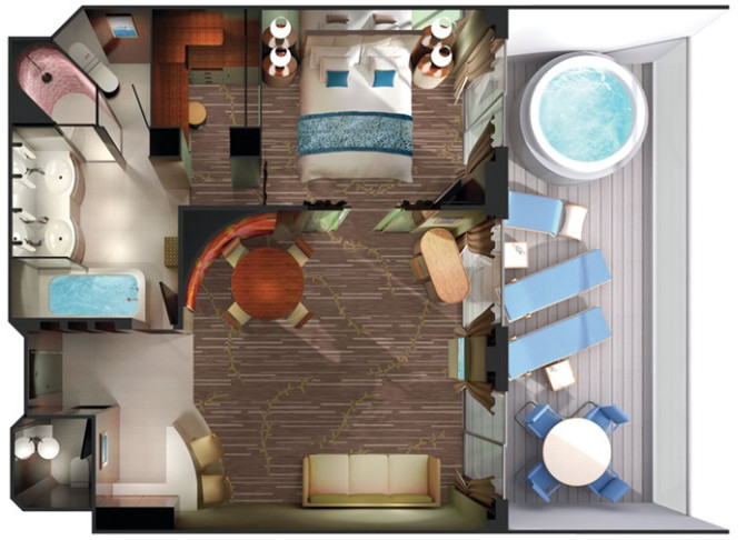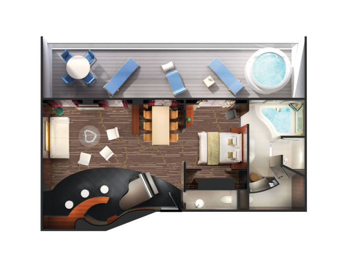 S7 - Owner's Suite od 62 m² / balkón od 15 m². 10,12,13. paluba. Max 4 osoby. Výhody Suite. 14 658 € 7 329 € za osobu