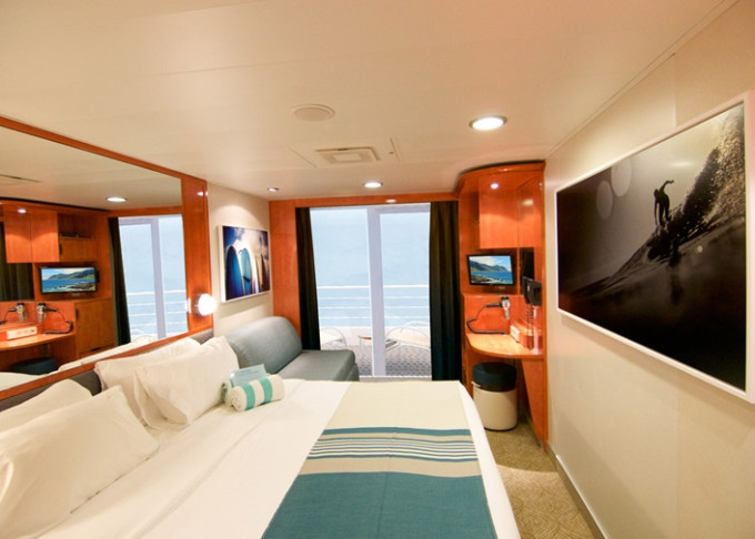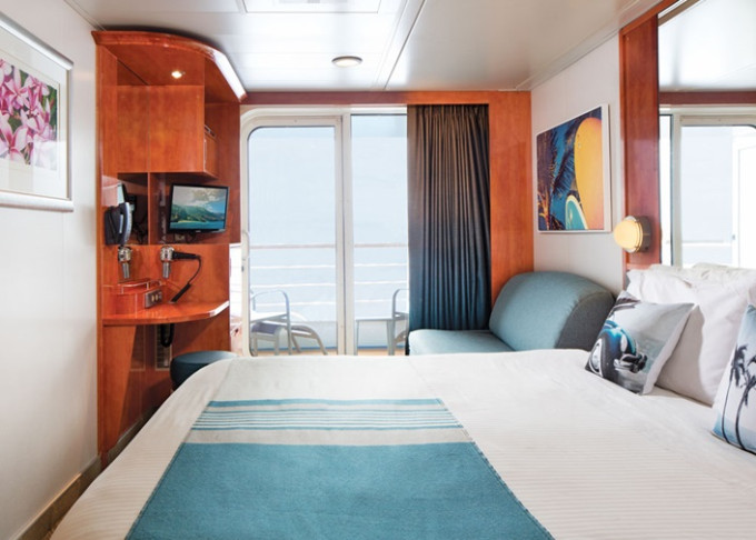 B1 - Kajuta s veľkým balkónom Aft-facing 21 m² / balkón 8 m². 7. až 10. paluba - vzadu. Max 3 osoby. 7 248 € 3 624 € za osobu