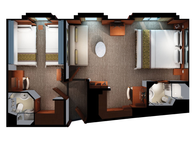 S4 - Deluxe Family Suite od 56 m² / balkón 9 m². 9. paluba - vpredu. Max 5 osôb. Výhody Suite. 18 098 € 9 049 € za osobu